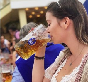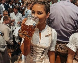 The men’s clothing which includes leather knee-length shorts called Lederhosen, and the women’s a fusion of bodice, blouse, full skirt and apron called a Dirndl have been finding increasing favour at the beer fest. Two decades ago many people had abandoned the traditional clothing, which dates back to the 1600s, but they are making a comeback with a vengeance among the modern festival attendee.